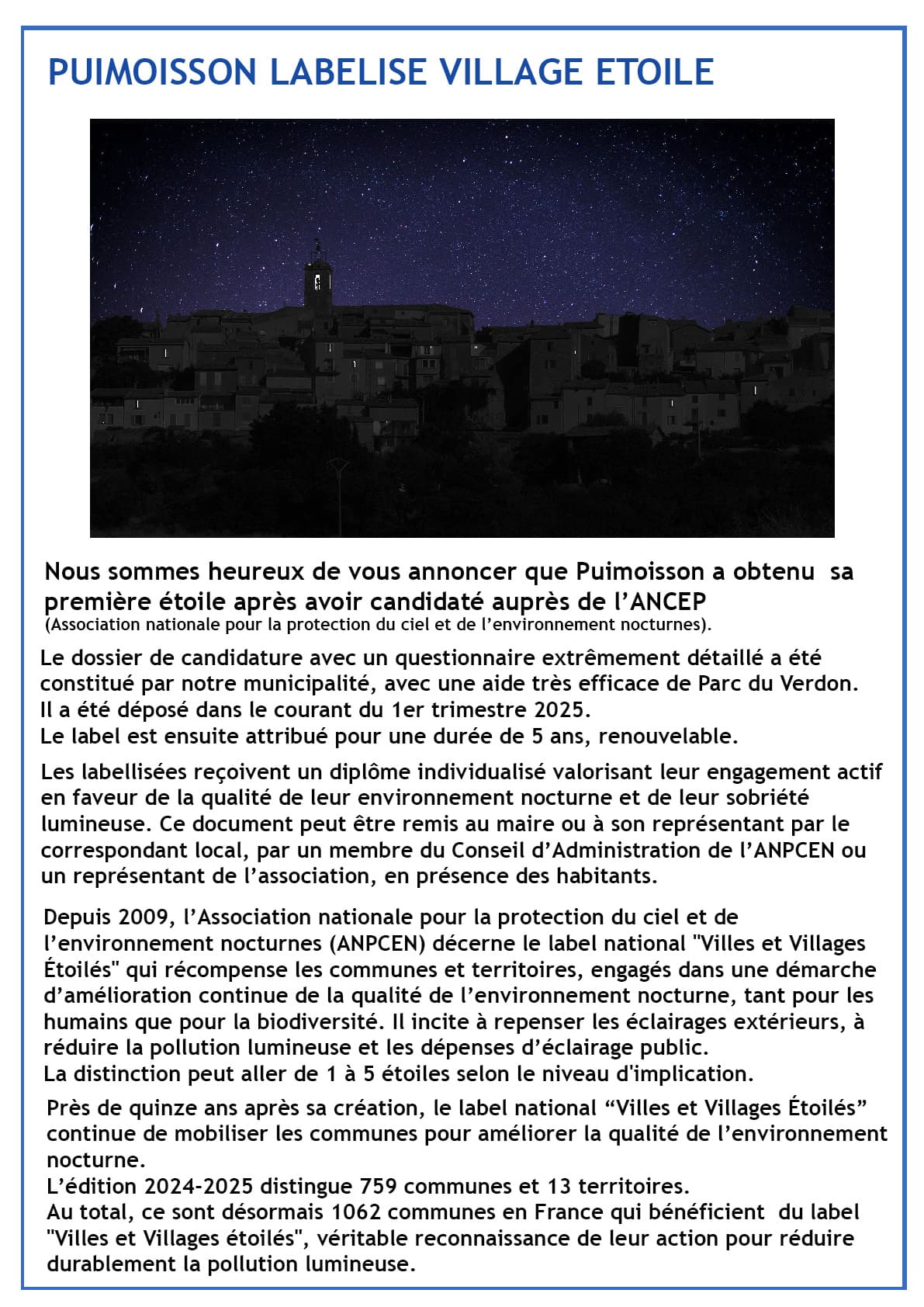 LABEL VILLAGE ÉTOILÉ